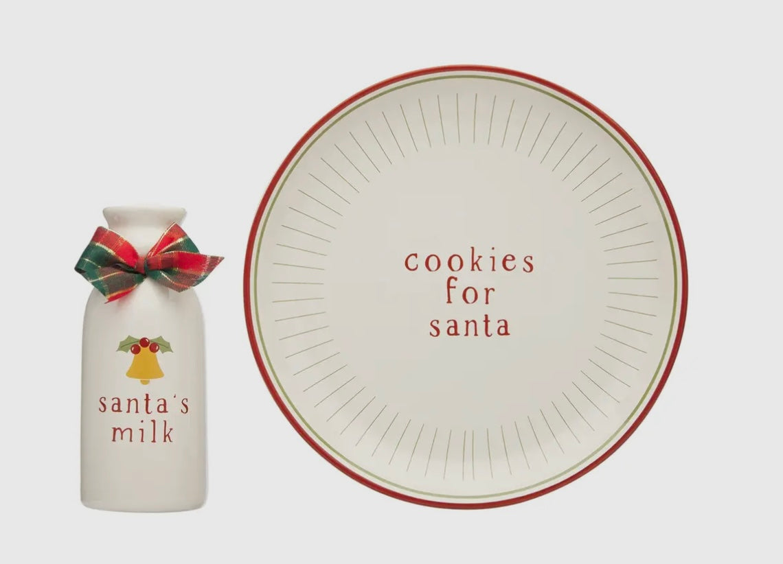 Santa Christmas Cookie Plate & Milk Jug Holiday Set
