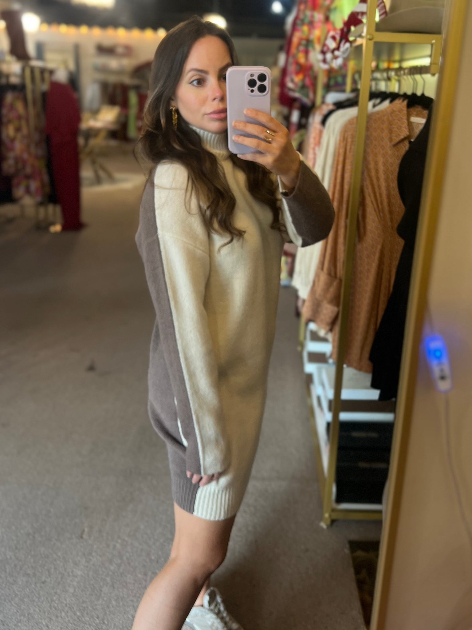 Chocolate & Vanilla Please - colorblock, long sleeve, mock neck sweater dress