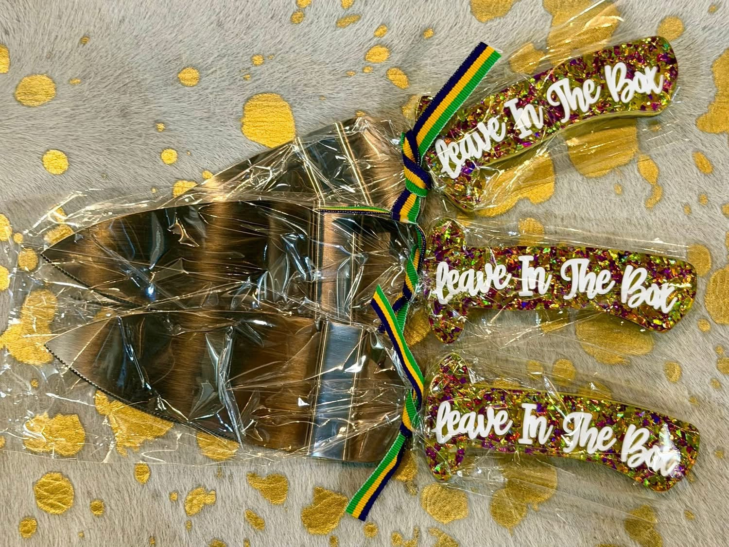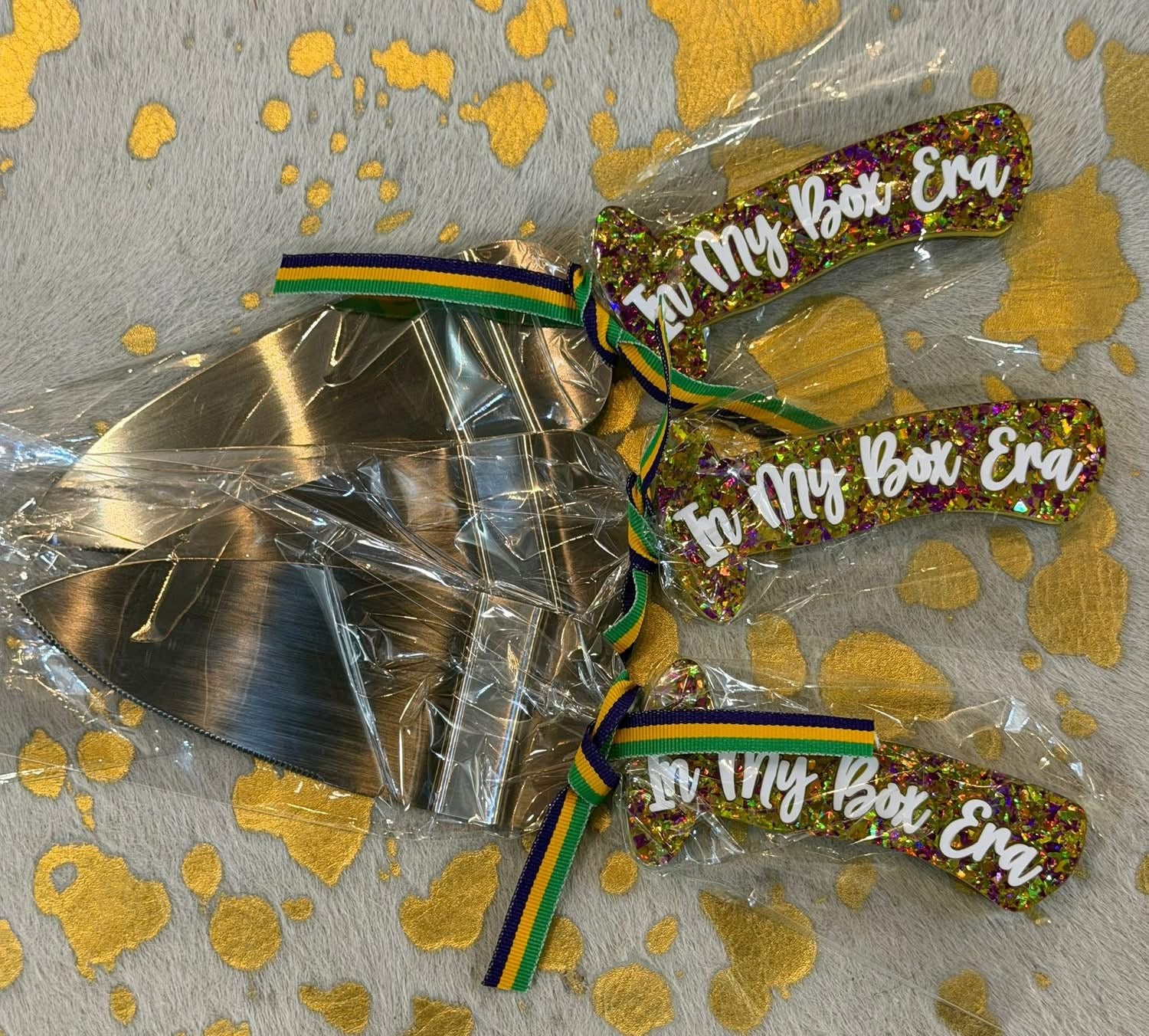 These King Cake knives are available for preorder and will arrive end of January, shipping immediately upon arrival—just in time for Carnival season!