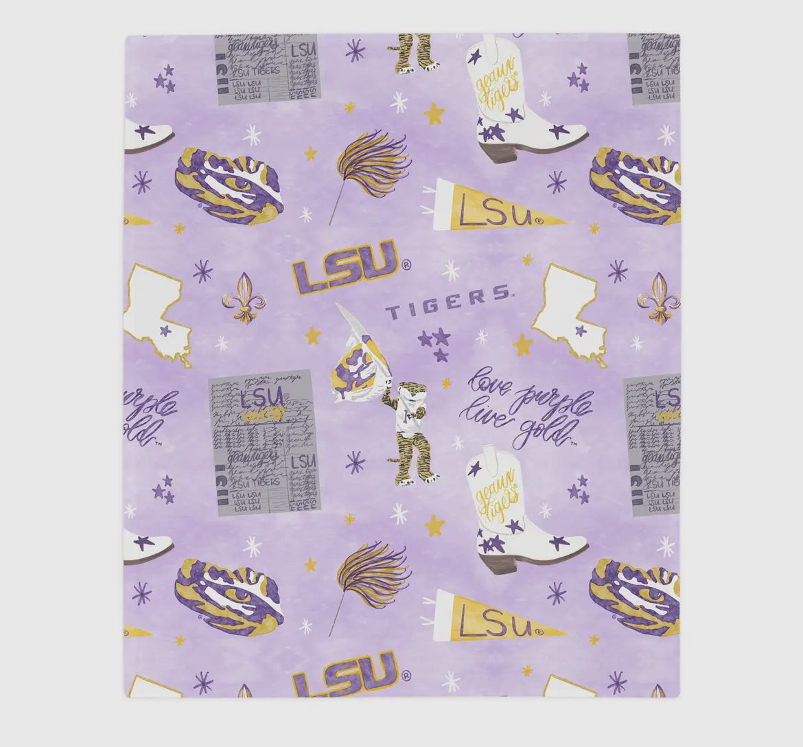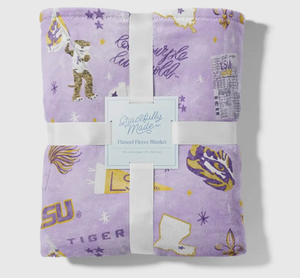 Cozy flannel fleece blanket featuring hand painted illustrations.