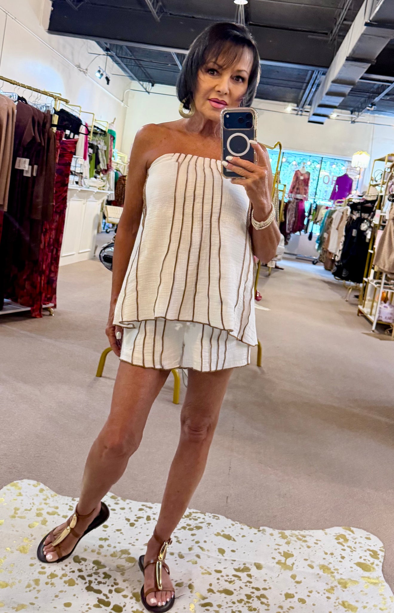 Beach Vibes - 2pc linen tube top w/matching shorts, fully lined